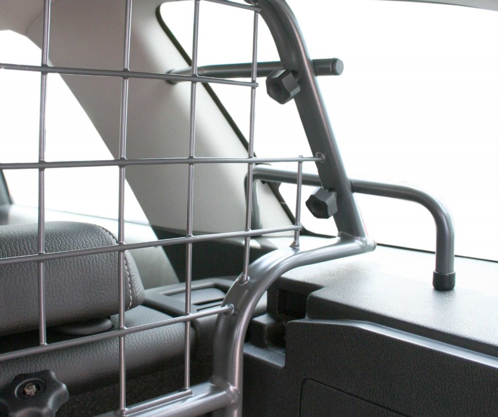 The Opel Astra Sports Tourer Dog Guard is installed without damaging your car. Feel safe with a secure barrier between the passenger compartment and the cargo area. Something as simple as the spare tire in your car weighs the equivalent of 1200 kg in a collision at 50 km/h, that's the equivalent of a small car flying through the cabin. A cargo net ensures that your belongings and cargo stay where they are meant to be, in the trunk.
