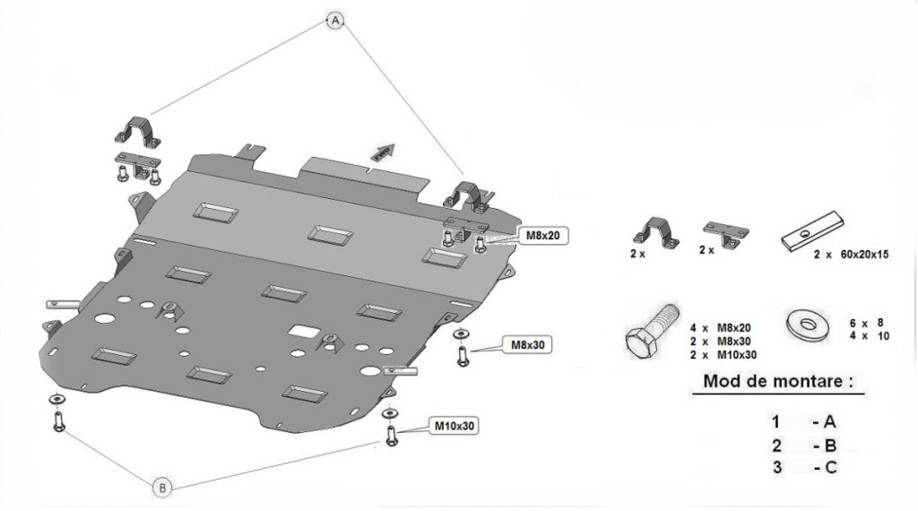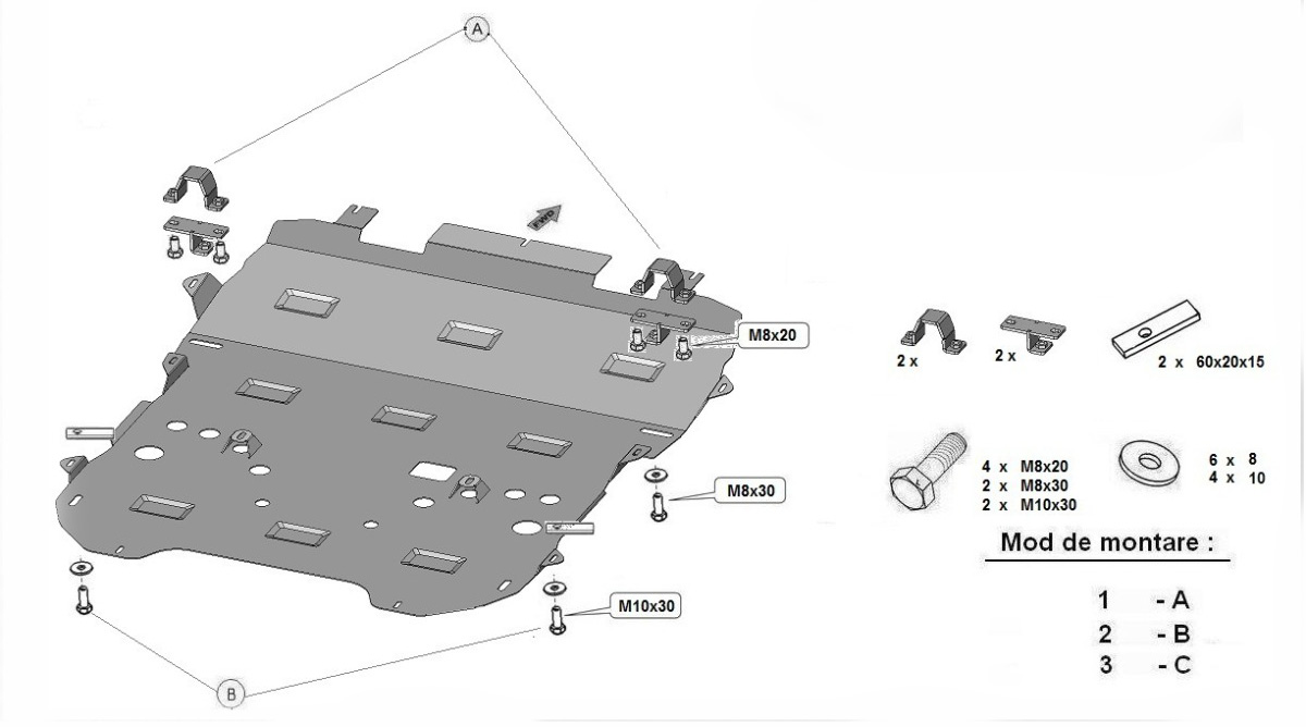 Skid Plate Peugeot 308 from 2014-2021 is designed to protect the engine, gearbox, radiator and bumper from damage. Installation is very easy, as the Peugeot 308 Skid Plate is mounted in the original mounting points on your car. The installation takes place without any damage to your car and can be restored to original design if desired.