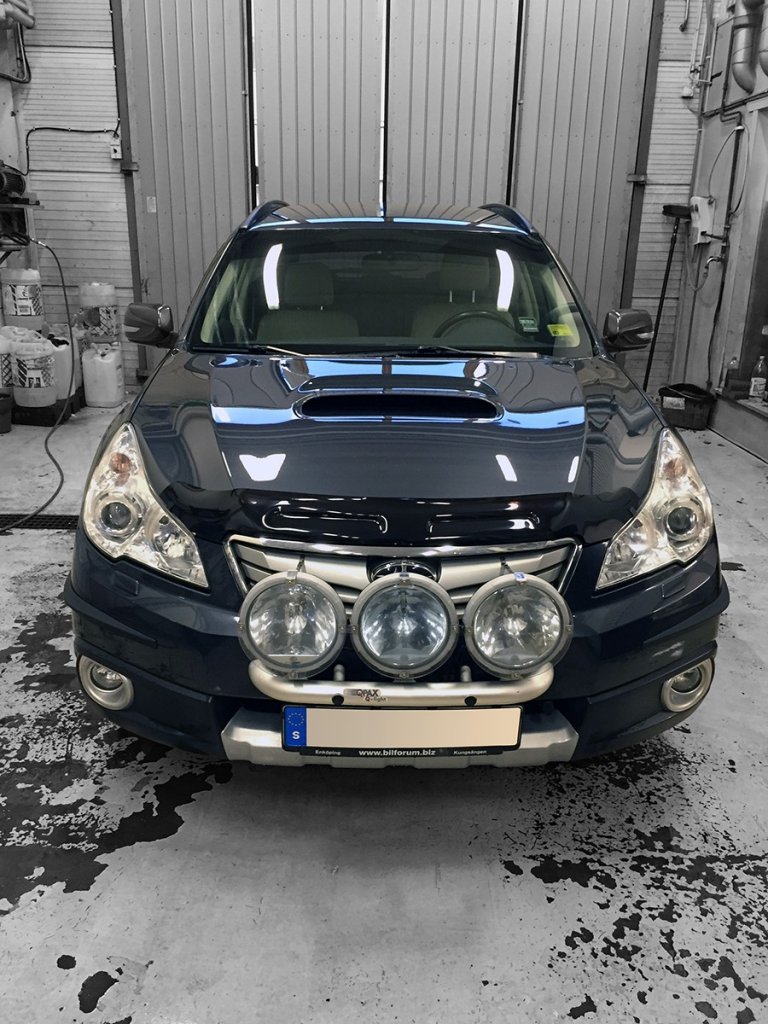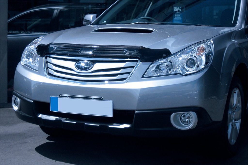 - Installation is completely non-invasive, with the Subaru Legacy Bonnet guard being fitted to the car's existing mounting points under the bonnet. The Bonnet guard is mounted with expander clips under the bonnet. At the outer edges above the headlights, matching W-clips made of impact-resistant plastic are used, which are clamped around the Bonnet guard and bonnet. The bonnet is protected by a transparent protective plastic that is fitted before the W-clips.