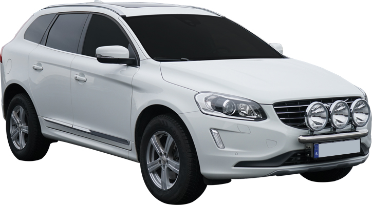 Our Volvo XC60 auxiliary light mount is designed to sit snugly against the front of the car, while being adjustable for placement to suit your taste.