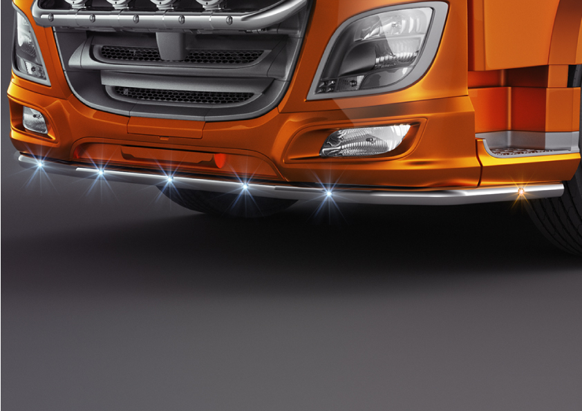 Stylish stainless steel bull bar, specifically designed for DAF XF 106 Super/Space Cab. The tube is highly polished to a chrome shine for a great look on your DAF.