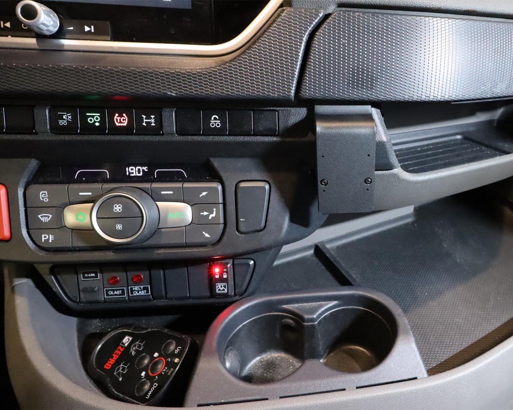 Phone holder DAF XG+ from 2021- is a tailored solution that combines functionality, safety, and style to enhance your driving experience. This holder is specifically designed to fit perfectly in your DAF XG+, ensuring a stable and secure place for your mobile phone without compromising the car's interior.