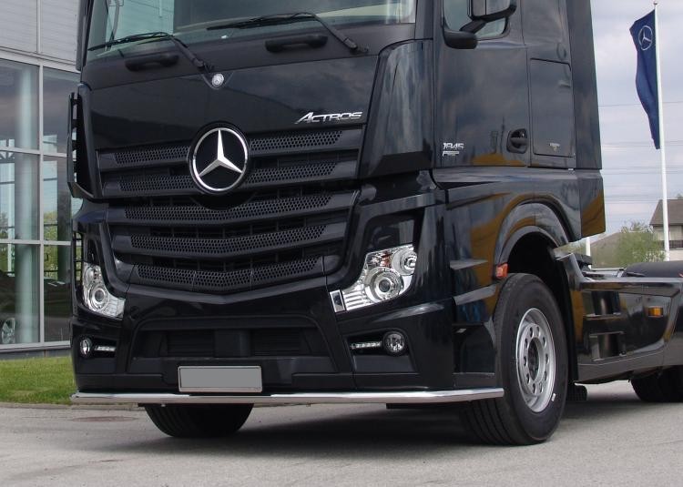 You can find similar products hereStylish and functional bull bar, designed for Mercedes-Benz Actros MP4 from 2011-. The surface treatment is high gloss polishing, which gives a chrome shiny easy to handle surface (both easy to wash off and keep clean).