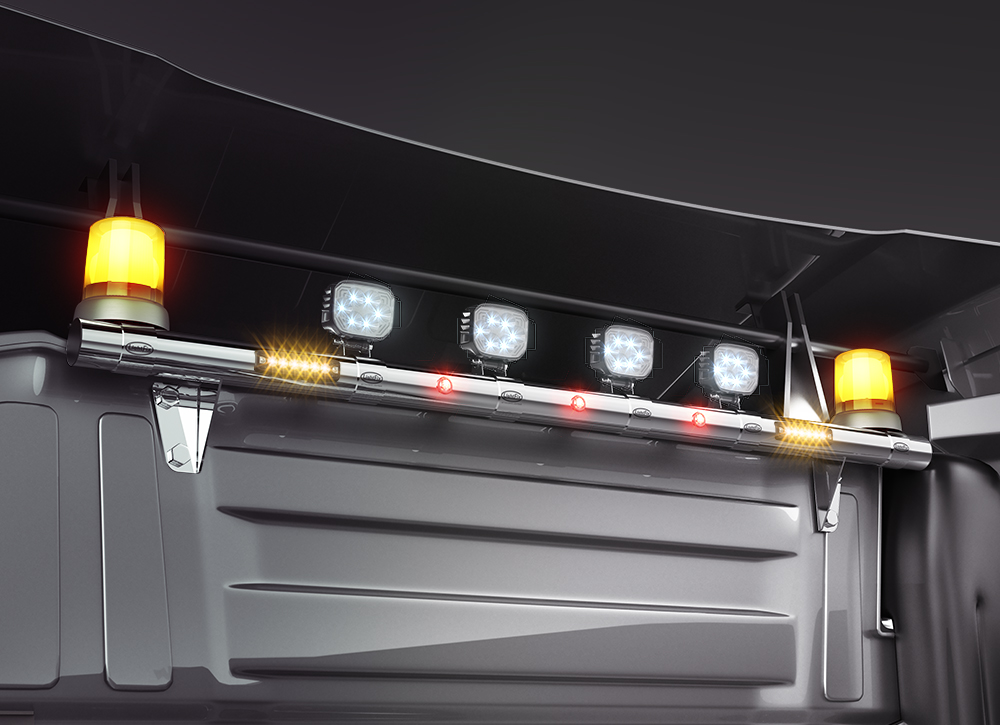 You can mount e.g. work lights, warning lights or roof light ramp on the work light bar. As an option, the bar is supplied with a pre-drawn connection cable for auxiliary lights, position lights and flashing/warning lights, completely according to your specification. Contact us when ordering.