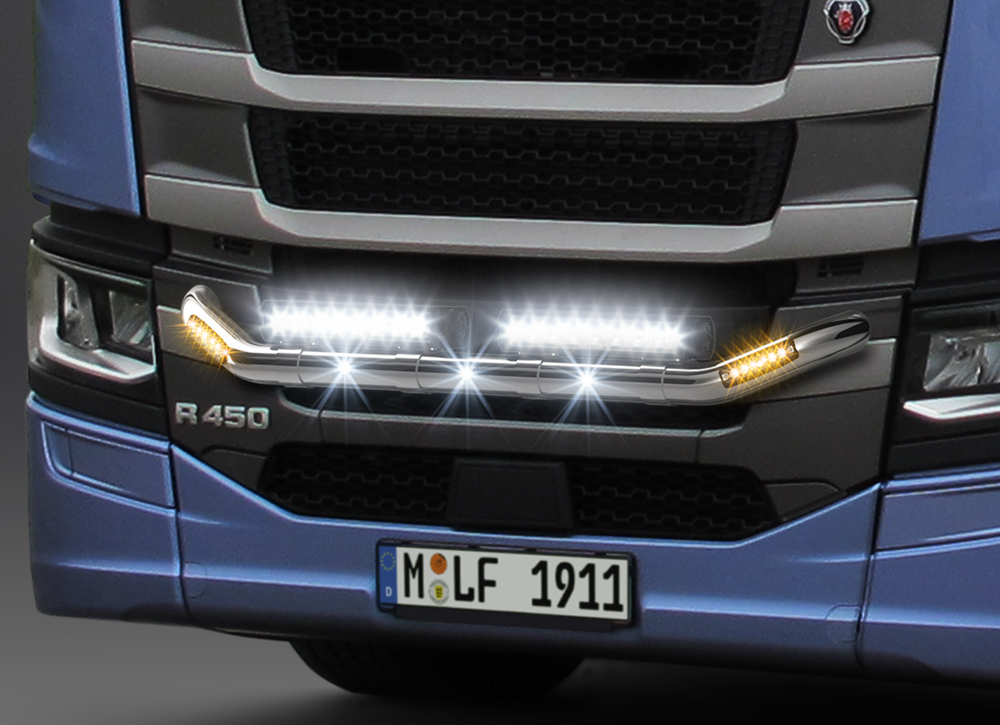 You can find similar products hereStylish bull bar Scania R/S series C20 from 2017- in stainless steel that is highly polished to a chrome shine.