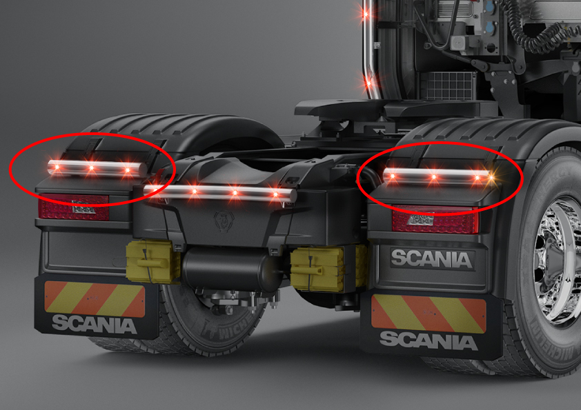 You can find similar products hereStainless steel mudguards, specifically designed for Scania C20 S/R from 2017-. The pipes are mounted along the rear mudguards and give a very nice look!