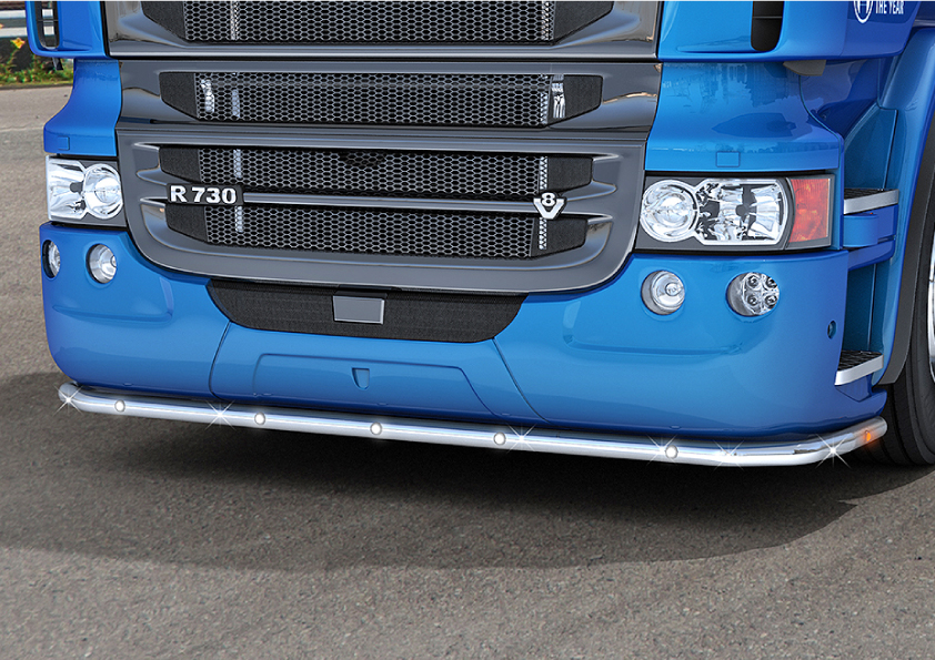 You can find similar products hereStylish stainless steel bull bar, specifically designed for the Scania R C19. The bar is highly polished to a chrome shine for a great look and good protection for your Scania.