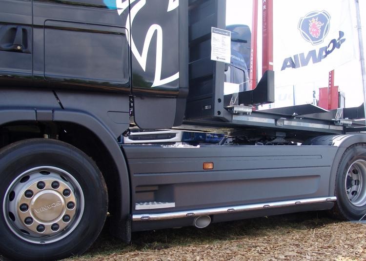 You can find similar products hereFunctional stainless steel side bars with LED lighting, designed for Scania R-series with wheelbase 3700 mm. The surface treatment is high gloss polishing, which gives a chrome shiny easy to handle surface (both easy to wash off and keep clean).