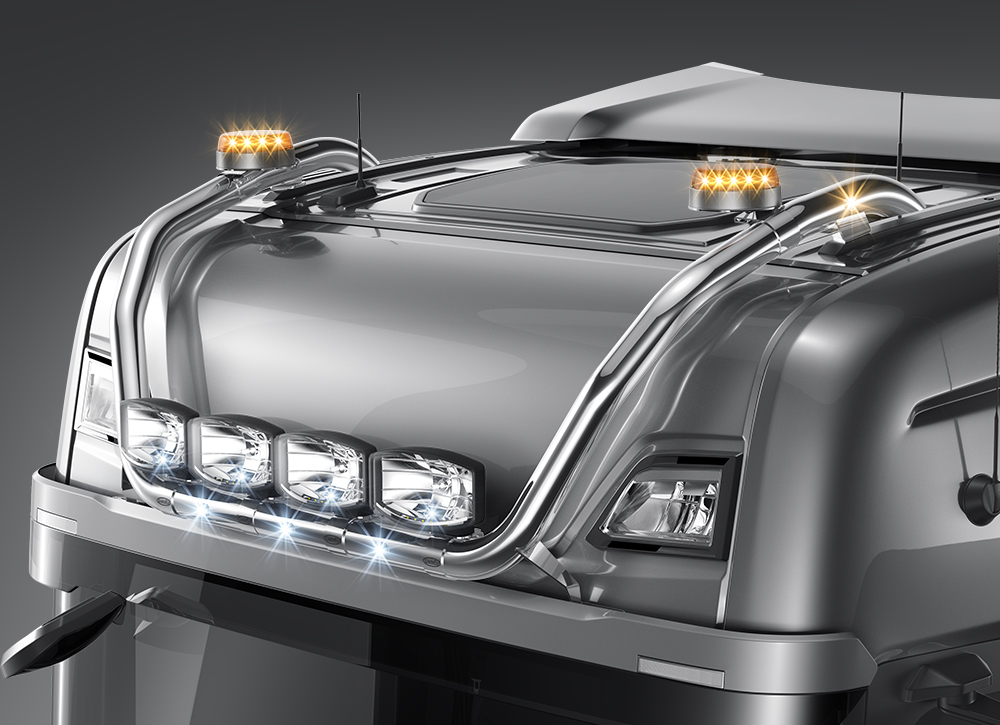 If you choose an extra light box and/or warning light box, your roof arch comes with pre-assembled lights for easy installation. Advantage: The arch is unpacked - Screwed on - The extra lights are adjusted - You have saved considerable time in the workshop! It is slightly more expensive than buying the extra lights yourself, but with working time in the workshop included, it will be a lower total cost. You can easily choose the Extra Light Box / Warning Light Box that suits you best as an accessory below.