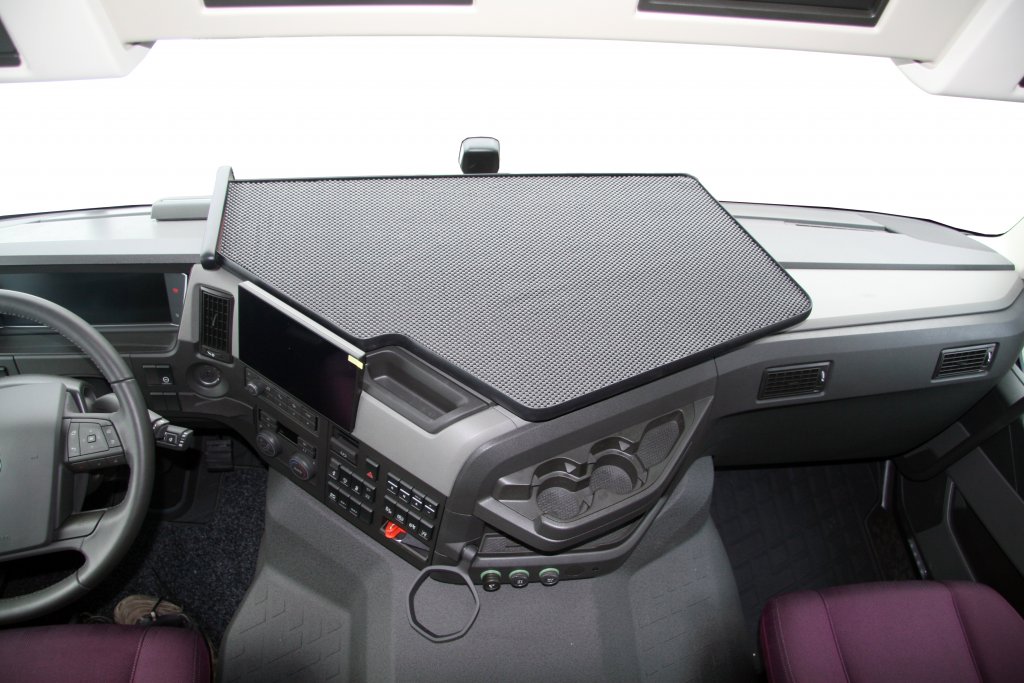 Practical truck table for mounting on the dashboard, obliquely in front of the driver's seat in Volvo FM Version 5 from 2021 onwards .